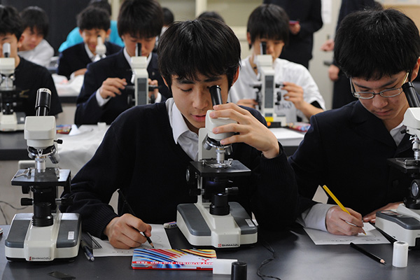 6年一貫校の本学園は、6年間を生徒の成長段階に即して、初級段階(中学1年・中学2年)、中級段階(中学3年・高校1年)、上級段階(高校2年・高校3年)の3段階に分け、指導計画等にその考え方を具体化して実践しています。